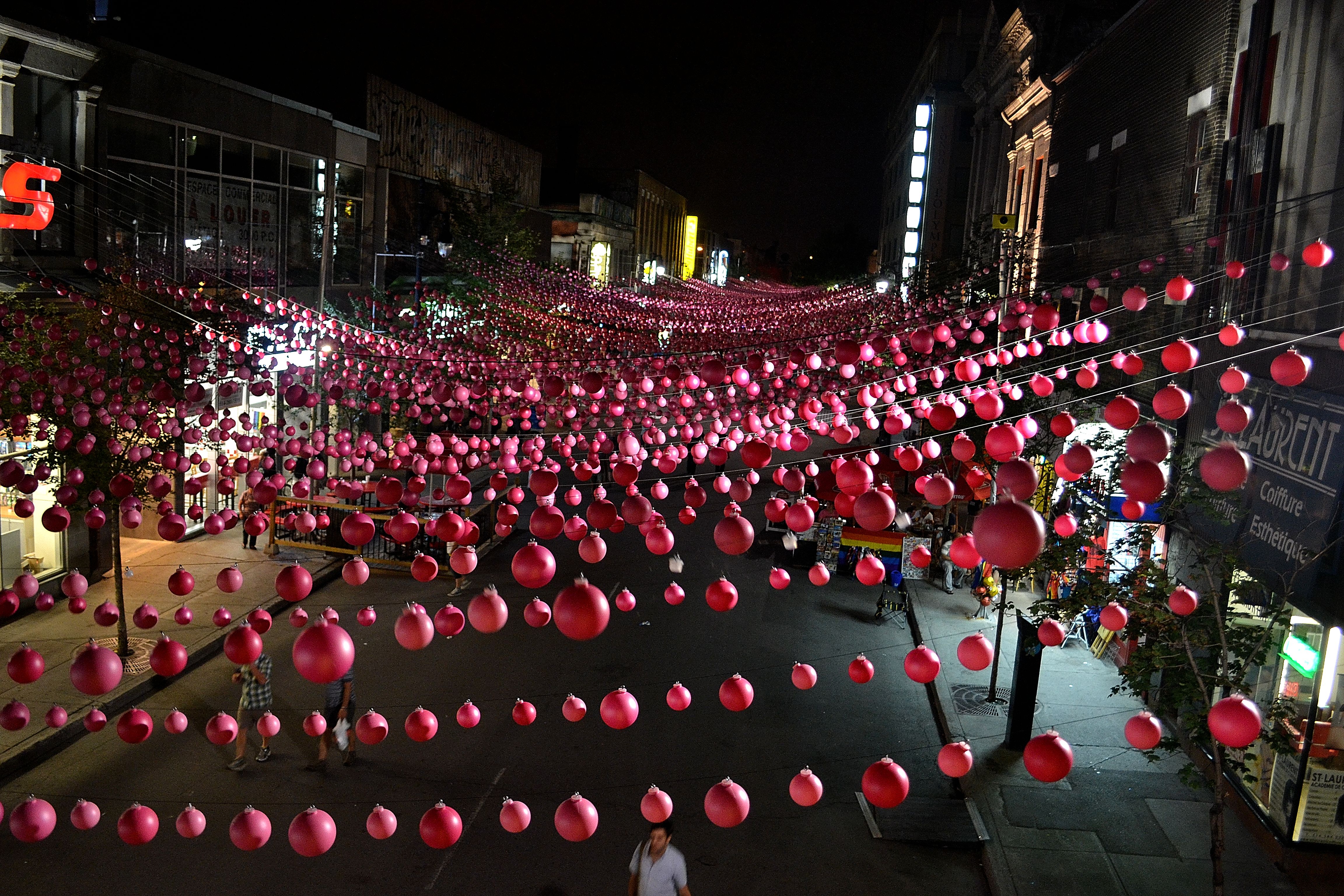 Gay Village of Montreal, decorated beautifully for an upcoming festival Posted by Krystal on October 17, 2012 Share this: Click to share on X (Opens in new window) X Click to share on Facebook (Opens in new window) Facebook Like Loading...