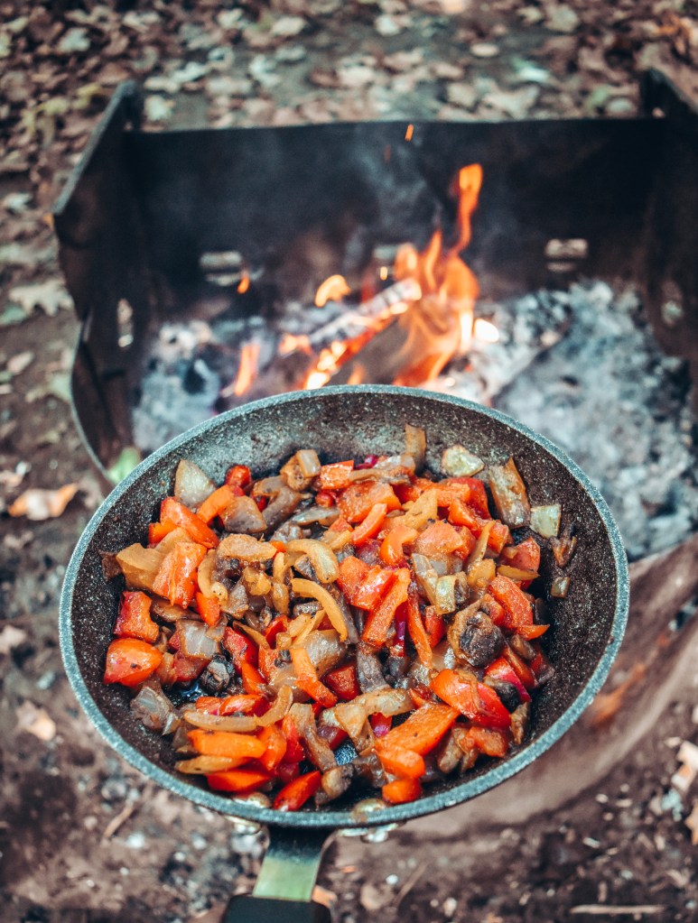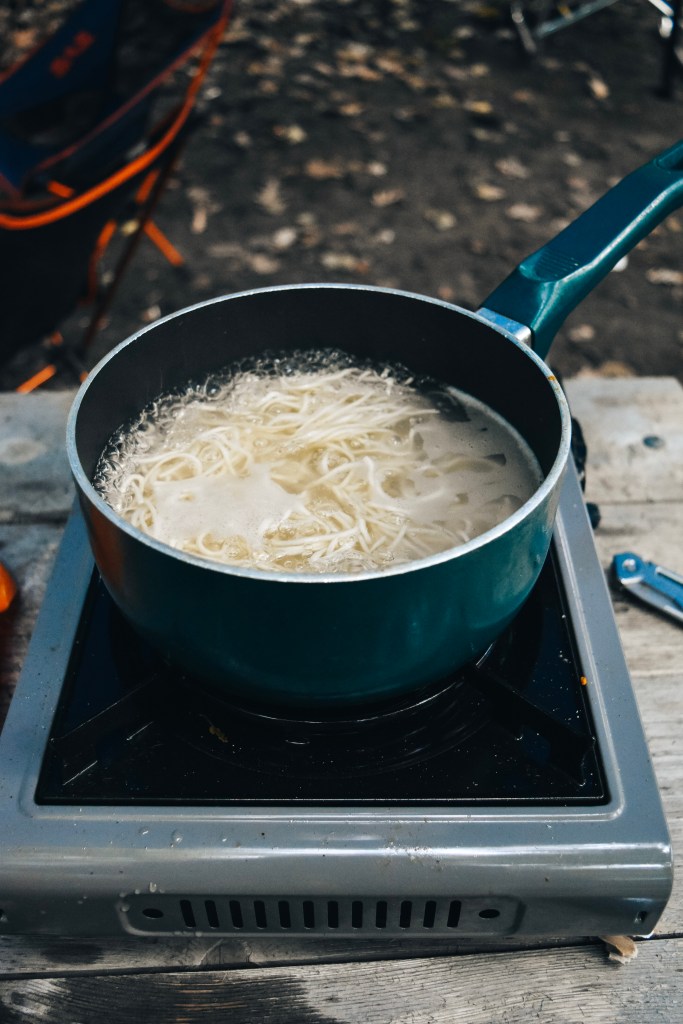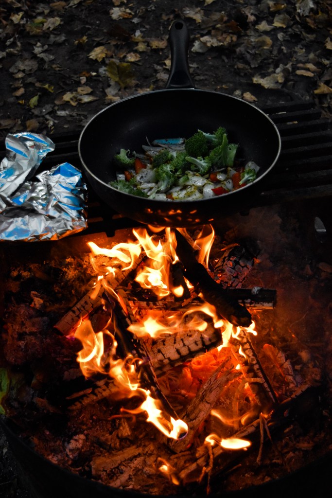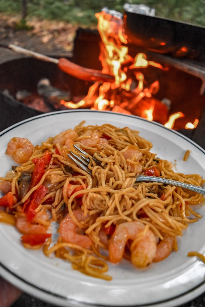Our meals included, instant noodles, vegetables, shrimp, sausages, and various salty snacks – all made over the firepit or on our portable burner.