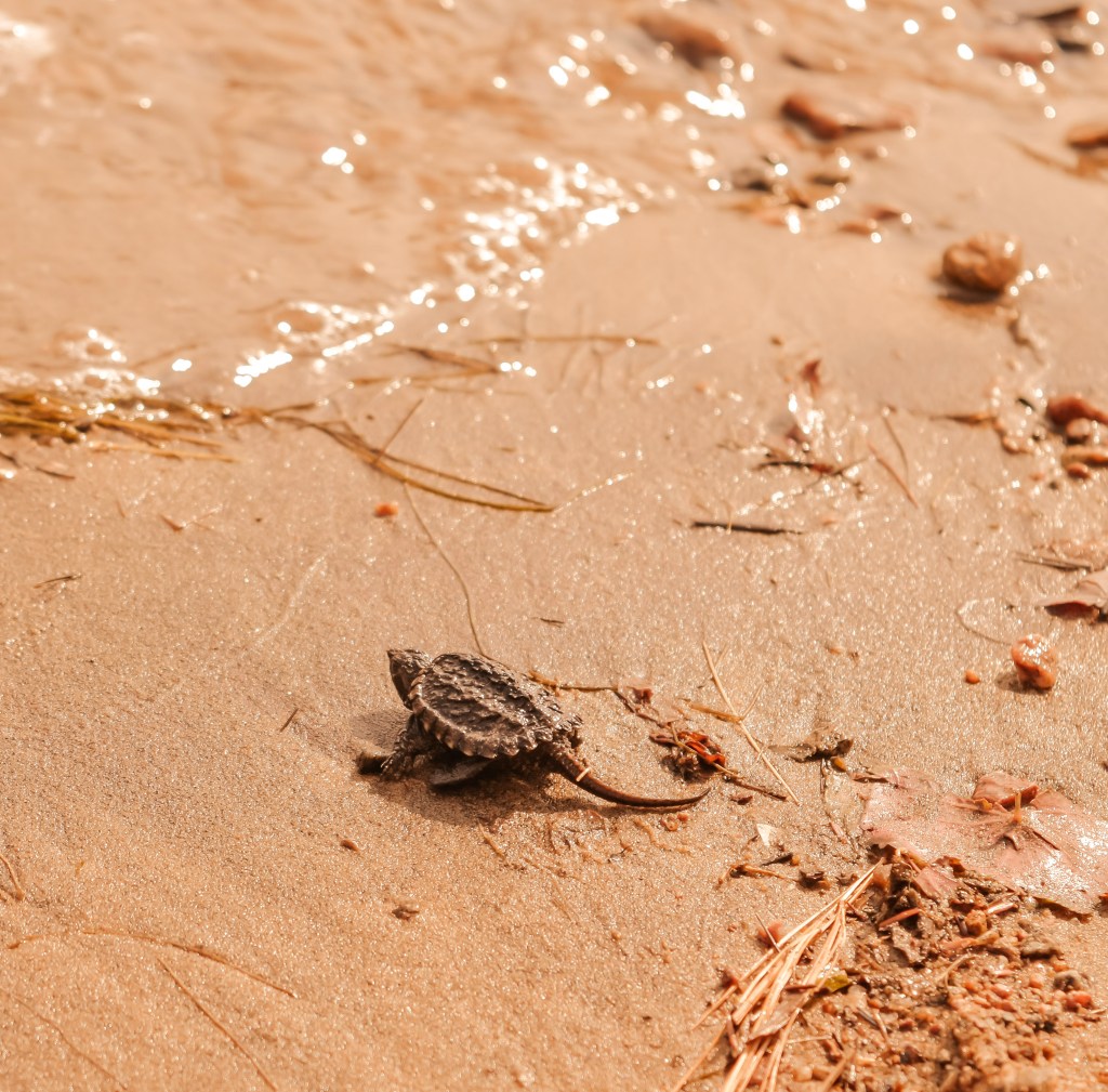 Of course, a trip up north would not be complete without some encounters with friendly native creatures. We came across this little turtle on the beach shore of our camp spot.